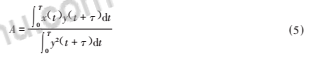 設(shè)上游傳感器測(cè)得的信號(hào)是x(t),下游傳感器測(cè)得的信號(hào)是y(t),對(duì)這兩個(gè)信號(hào)進(jìn)行互相關(guān)計(jì)算: