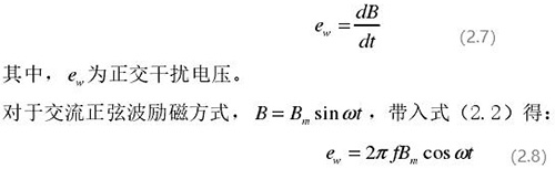 從上圖 2.5 中可以觀察到兩個電*、勵磁線圈、轉(zhuǎn)換器內(nèi)阻之間形成了一個閉合回路,將此回路稱之為初級繞組,從理論上進(jìn)行分析,磁力線 B 應(yīng)當(dāng)平行于勵磁線圈所產(chǎn)生的磁感應(yīng)線,但在實(shí)際的應(yīng)用過程中由于工藝差異,因此無法達(dá)到理想狀態(tài),會產(chǎn)生磁力線穿過勵磁線圈磁感應(yīng)線的情況,此時將會產(chǎn)生相應(yīng)的感應(yīng)電動勢,將此部分感應(yīng)電動勢稱為變壓器效應(yīng)。此效應(yīng)同樣滿足于楞次定律,利用楞次定律進(jìn)行計(jì)算可得如下電動勢: