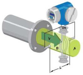 基本上,當導(dǎo)電液體流過磁場時,會感應(yīng)出電壓。為了測量該產(chǎn)生的電壓(與流動的液體的速度成正比),使用了兩個彼此相對安裝的不銹鋼電*。