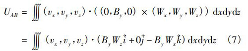式中V為管道法蘭式電磁流量計傳感器測量空間;W→為權(quán)函數(shù)。在直角坐標系(x,y,z)中,式(5)可以轉(zhuǎn)換為