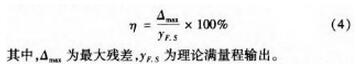 本文采用*小二乘法進(jìn)行線性度評(píng)定,即擬合直線為*小二乘直線。*小二乘直線保證了傳感器至*輸出的平均值對(duì)它的偏差的平方和為*小,即可以保證擬合直線得到的結(jié)果與實(shí)測(cè)結(jié)果之間的偏差很小,更具可靠性。根據(jù)定義,線性度即是校準(zhǔn)曲線對(duì)這條*小二乘擬合直線的偏離程度。